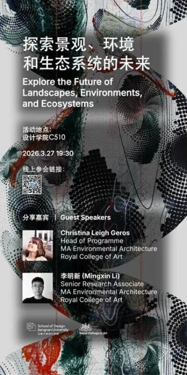 活动将结合英国皇家艺术学院 MA Environmental Architecture 项目的教学与研究实践,介绍该项目如何通过建筑学、地理学、人类学、艺术与设计等领域的交叉研究,推动设计走向更具批判性、行动性与公共性的知识生产方式。同时,嘉宾也将分享自身围绕气候生态、土地关系、在地社区所展开的研究经验,为同学们提供关于国际设计教育、研究路径与未来发展方向的参考。