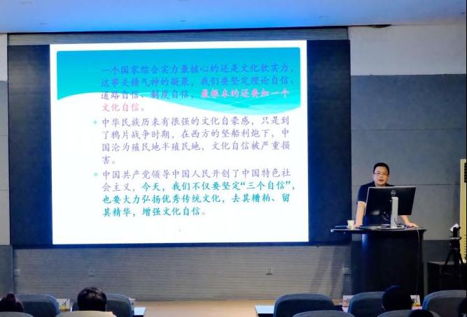会议最后,学院党委书记王维青以《坚定文化自信—建设中华民族现代文明》为题为各位学员带来党课第一讲。他以党的二十大报告中关于文化自信的重要内容为开场,强调了一个国家综合实力最核心的还是文化软实力,要坚定理论自信、道路自信、制度自信,也要大力弘扬优秀传统文化,去其糟粕,留其精华,增强文化自信。并通过2014年5月习近平总书记在北京大学师生座谈会的讲话和2016年5月在哲学社会科学工作座谈会等案例,指出文化是一个国家、一个民族的灵魂,文化自信是更基础、更深沉、更持久的力量,增强文化自信是大势所趋。最后结合习近平总书记在2023年6月2日在文化传承发展座谈会上的重要讲话以及习近平文化思想,勉励学员们要坚定文化自信,全面深入了解中华文明历史,为推动中华优秀传统文化创造性转化、创新性发展,为建设文化强国、建设中华民族现代文明贡献青年力量!王书记内容翔实,深入浅出的讲授令全体参会成员热情高涨,受益匪浅。在热烈的掌声中,第一讲党课圆满结束。
