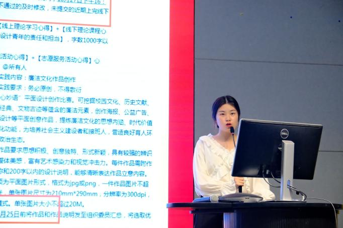 暑期青马工程”的实习过程,分享了自己想要加入中国共产党的心路历程,并从这些经历中逐渐领悟到“从群众中来,到群众中去”的真正涵义,呼吁在座的设计学子要贯彻全心全意为人民服务的宗旨,将党的理念、政策融入自己的设计创作中,为中华民族伟大复兴的中国梦贡献蓬勃的设计力量。