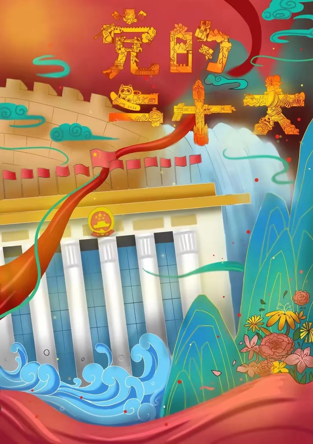 习近平总书记曾说:“要把握传承与创新的关系,学古不泥古、破法不悖法,让中华传统文化成为文艺创新的重要源泉”。设计学子们牢记习近平总书记的教诲,在行动中将爱国爱党精神与传统文化相结合。在班长和团支部书记的带领下,美术2201、美术2202、服艺2202、服艺2203、环艺2204班的同学们以专业技能发挥所长,通过创作“青春献礼二十大,强国有我新征程”、“奋斗百年路,启航新征程”、“踔厉奋发,笃行不怠”、“喜迎二十大,再铸新辉煌”等一幅幅书法,描绘出青春的壮志豪言,笔笔浓墨,也映照出美好的中华明天;通过板绘创作出党的一大到党的二十大的二十幅佳作,从一艘红船划破天际,播下革命火种的党的一大,到确立毛泽东思想,为中国革命注入蓬勃动力的党的七大,到建立社会主义市场经济体制,扬起中国改革开放新风帆的党的十四大,再到如今以中国式现代化全面推进中华民族伟大复兴的党的二十大,同学们在一幅幅原创化作中寄托对祖国最深沉的热爱与祝福。