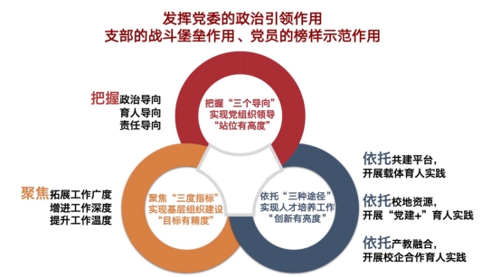党委持续发挥党委的政治引领作用、支部的战斗堡垒和党员的榜样示范作用,不忘教育初心,牢记育人使命,把握“三个导向”、聚焦“三度指标”、依托“三种途径”,实现党组织的领导“站位有高度”、基层组织建设“目标有精度”、思想政治工作“创新有亮度”,不断夯实工作基础,持续凝聚工作合力,着重打造工作精品,开创学院党建工作新局面,使得学院各项事业获得高质量新发展。