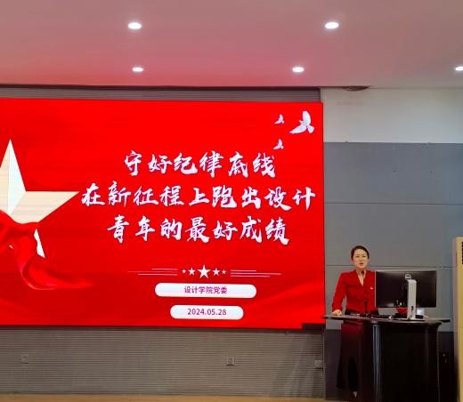 党委副书记兼副院长江琳娜以《守好纪律底线,在新征程上跑出设计青年的最好成绩》为题为与会党员带来党纪学习教育主题党课。她从“入党誓词”中“严守党的纪律”为引,从“深化对加强党的纪律建设重大意义的认识”“把握《条例》的鲜明特点”“把党的纪律内化为日用而不觉的言行准绳”三个方面着重强调了学习党的纪律的重要意义,细致解读了新修订《中国共产党纪律处分条例》中的更新条款,同时结合某高校毕业生学术不端和某画家抄袭的案例,引导学生在学懂弄通中准确掌握党纪学习教育主旨要义和规定要求,进一步明确日常言行的衡量标尺;而后充分立足设计专业,详细介绍了设计在文化传承中的重要角色和学院的先进做法,回应了“如何跑出设计青年的最好成绩”的时代之问,希望广大毕业生党员能够在严守纪律底线的基础上担负起“推动中华文明创造性转化和创新性发展”的设计使命,在中华民族伟大复兴的新征程上跑出设计青年的江南速度。