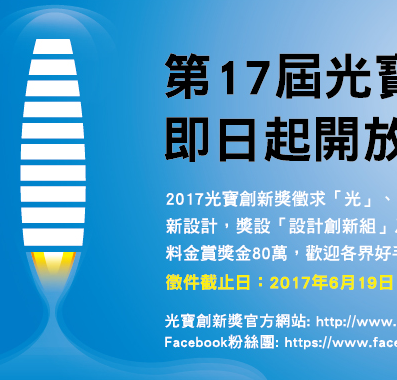 2017 光寶創新獎 創新是一種態度,突破科系與領域藩籬。第17屆光寶創新獎徵求「光、電、節能」與「智慧科技」好點子! 邀請各路好手用無限創意與想像,用科技解決地球重要的問題,打造未來智慧生活。單組首獎新台幣40萬元等你來挑戰! 跨組金賞雙料冠軍獎設80萬元 2017光寶創新獎共設「設計創新組」及「技術創新組」兩組競賽[…]