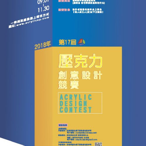 2018第17屆壓克力創意設計競賽,主辦單位為高雄塑酯化學工業股份有限公司,承辦單位為雲林科技大學。现邀請我校設計科系的學生參加壓克力創意設計競賽,歡迎瀏覽壓克力創意設計競賽網頁 //contest.acrylicap.com一、竞赛内容与竞赛类别活动宗旨: 本设计竞赛为提供学术界与产业界一个设计交流平台,让参赛学生利用压克[…]